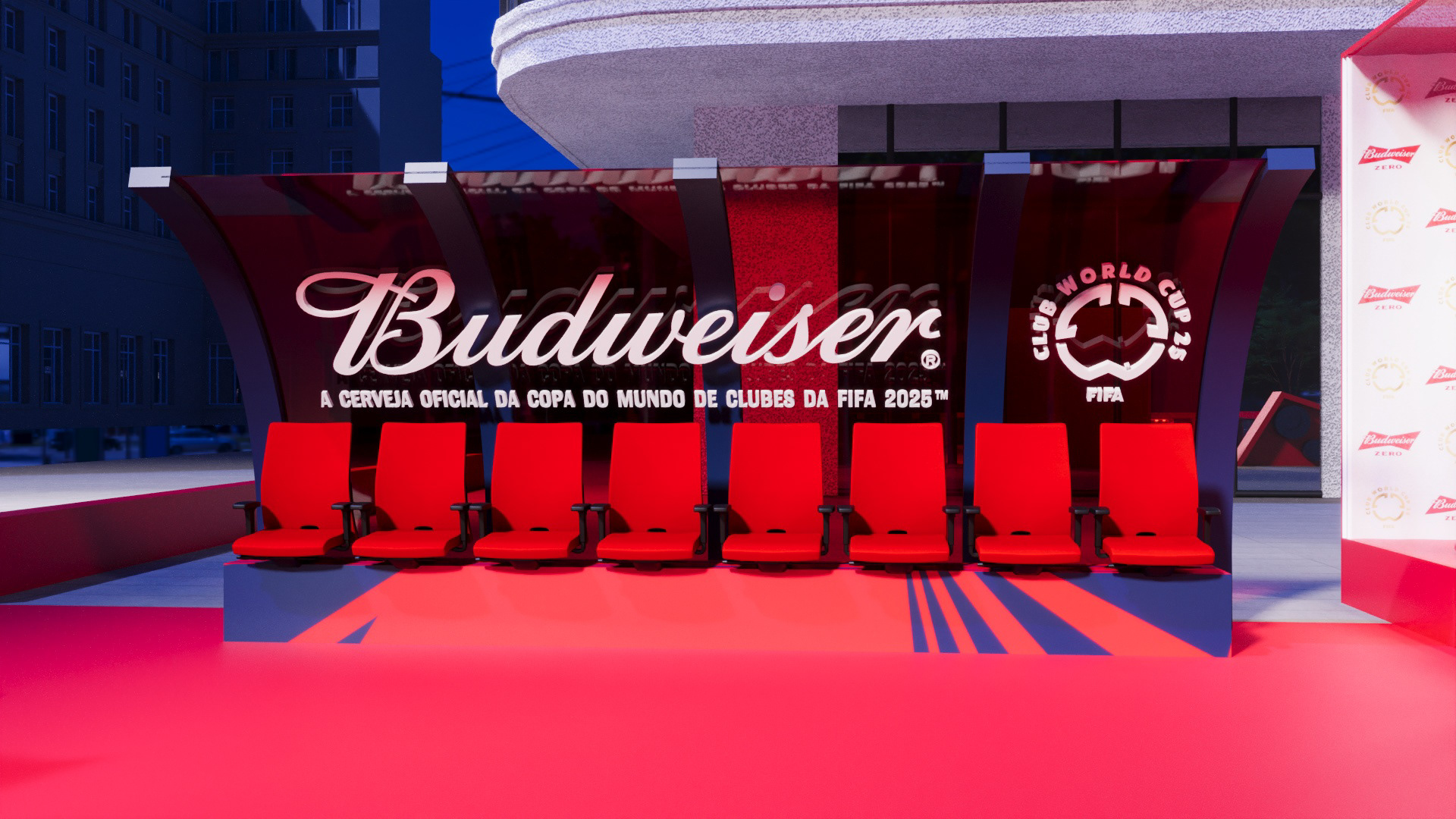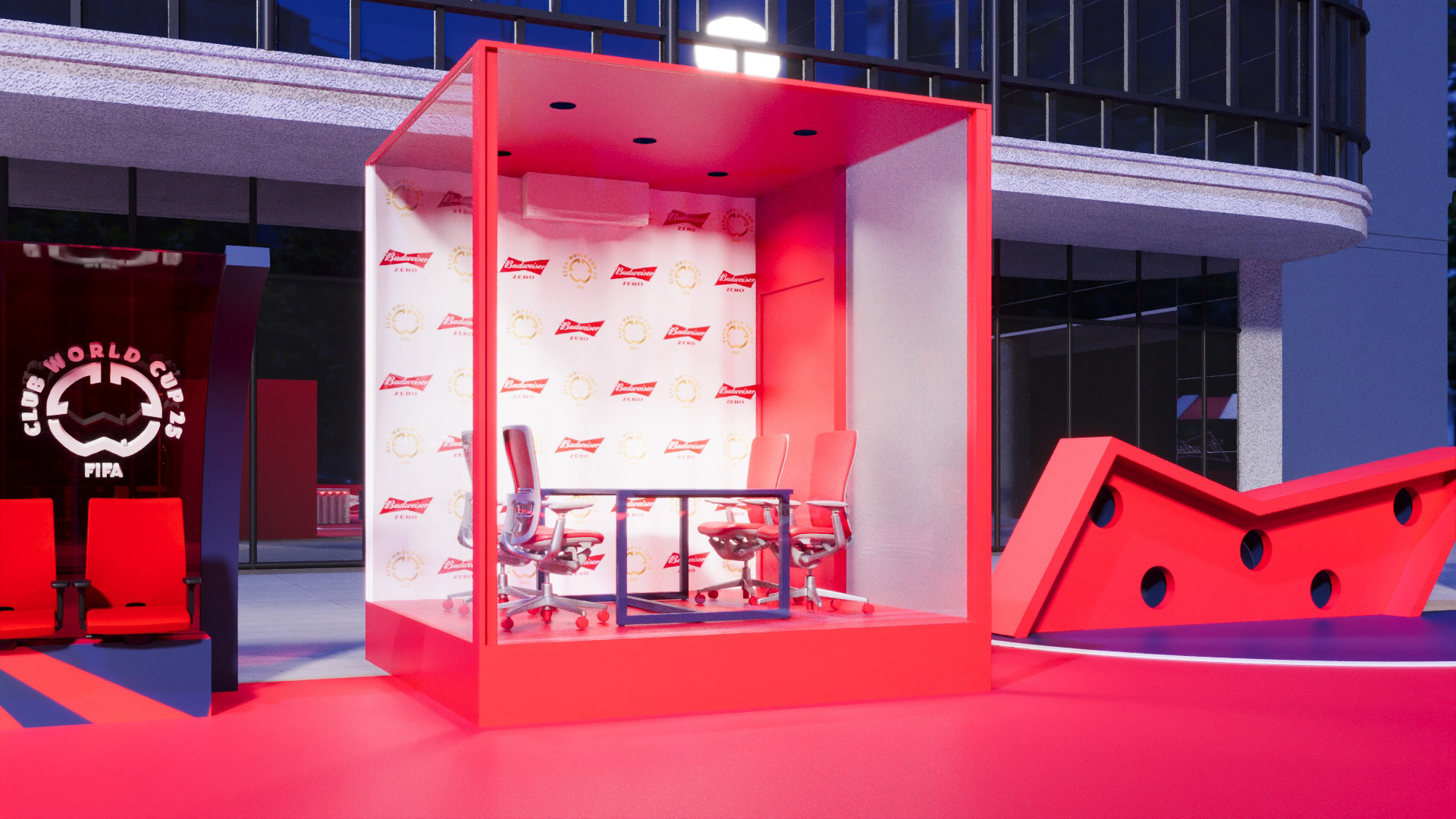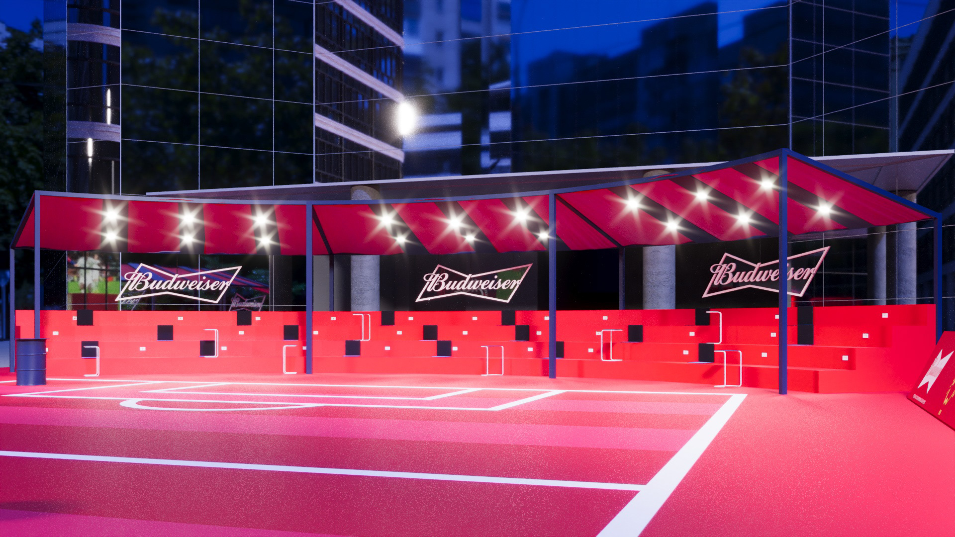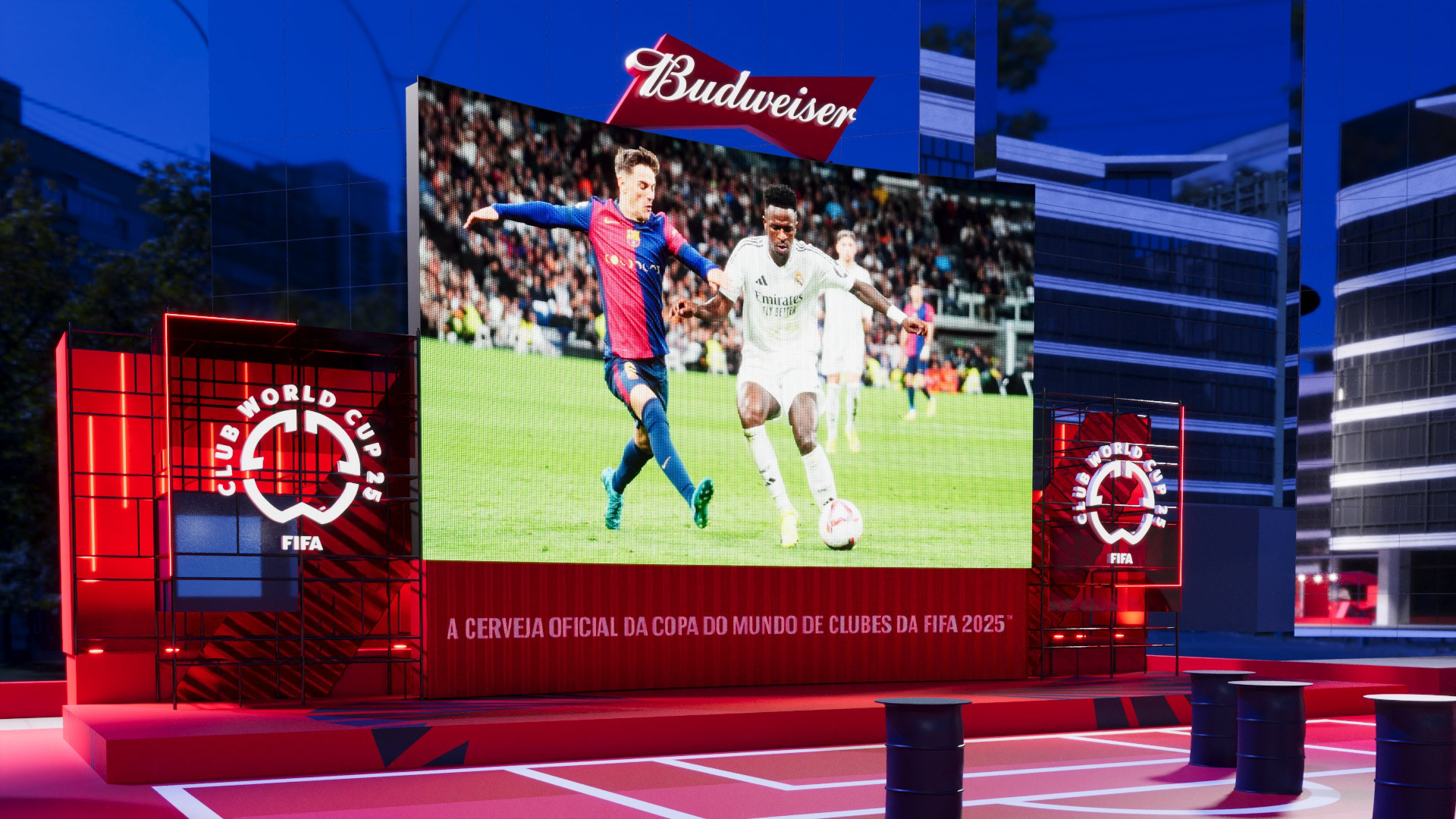 Project created for Budweiser during the FIFA Club World Cup, developing a space in the heart of Faria Lima where people could watch the tournament matches during work hours.