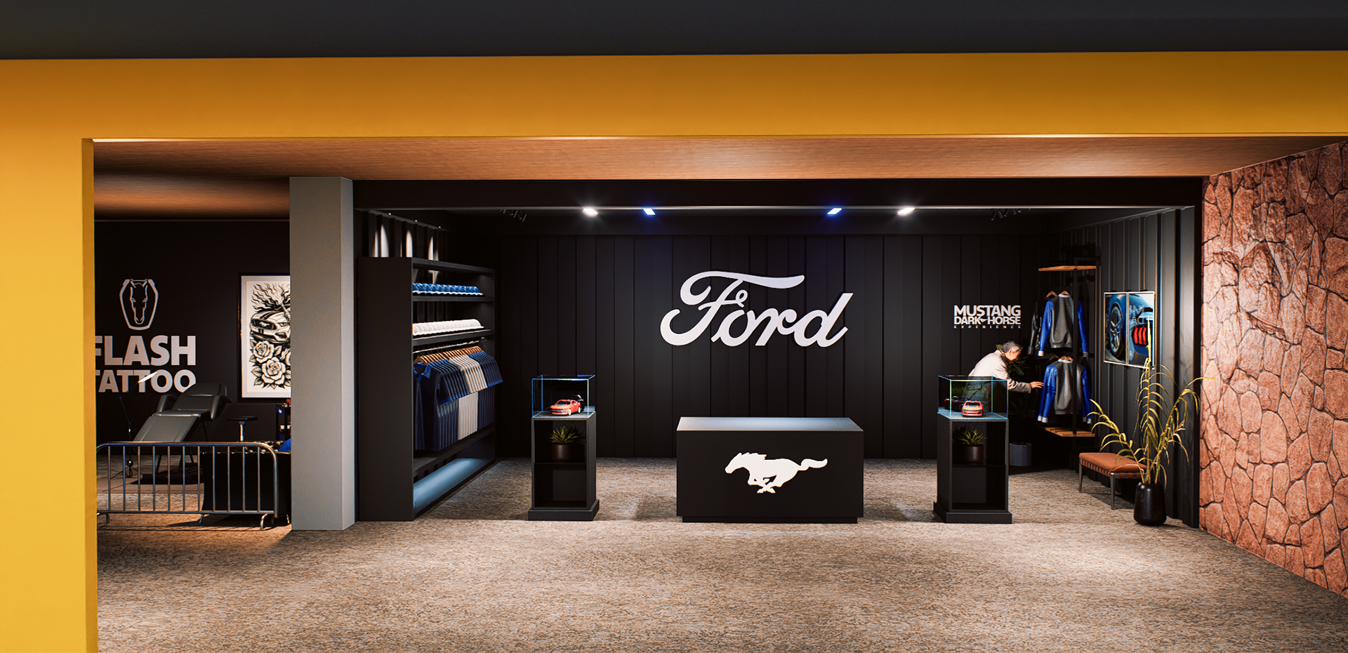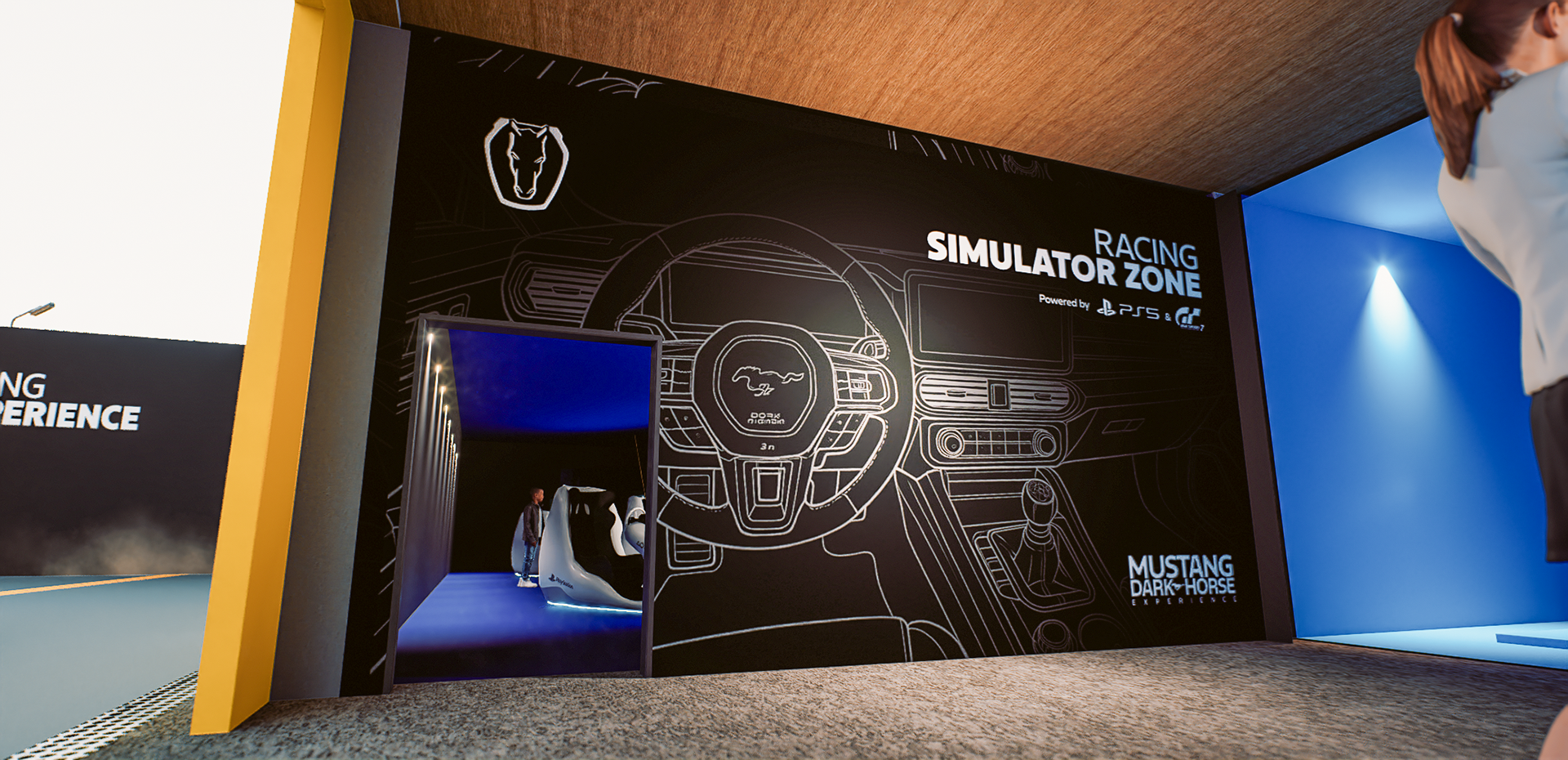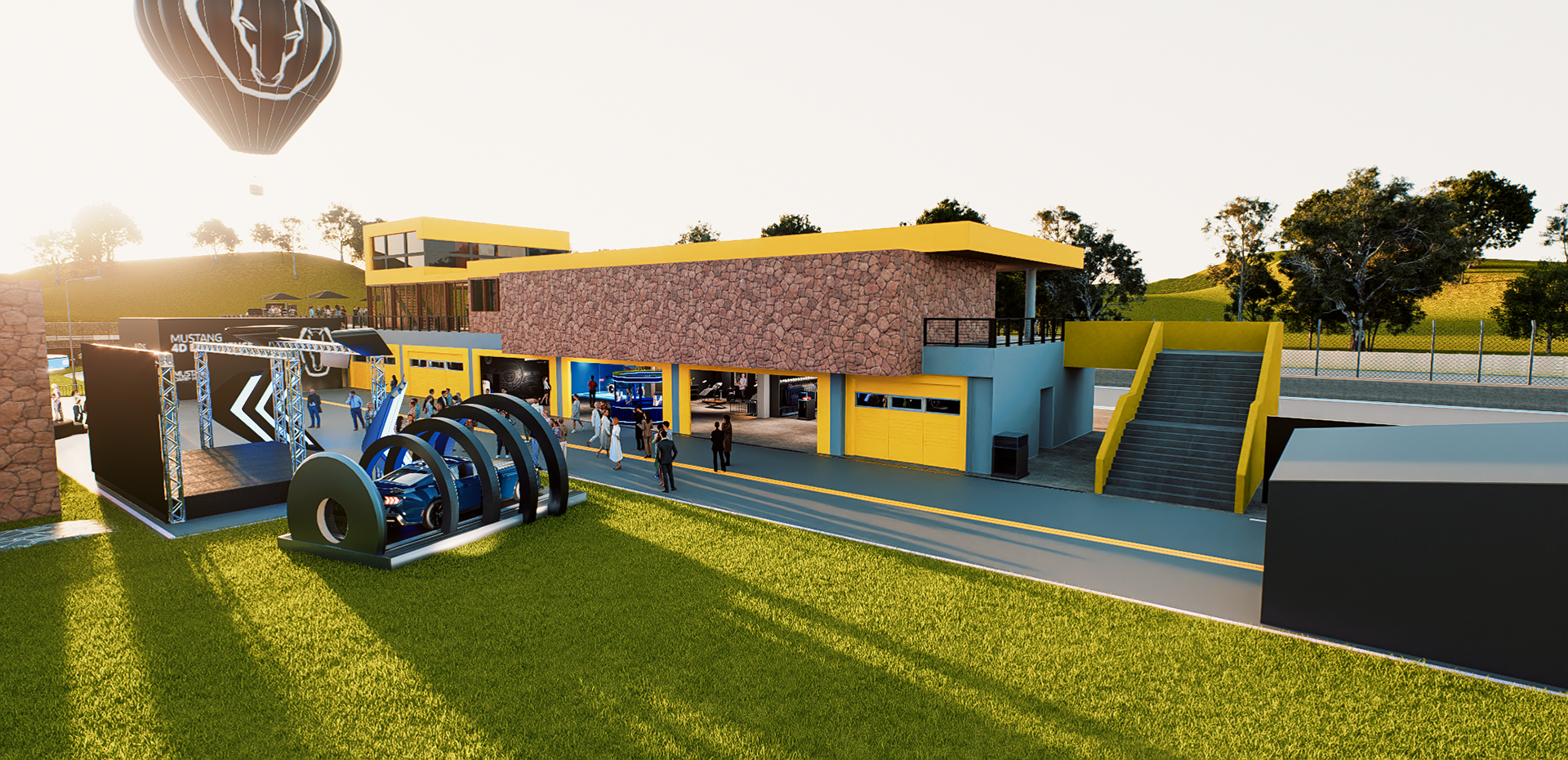 Project developed for the launch event of the Dark Horse Mustang in Brazil, organized by Ford and held at the Autódromo Velocitta in Mogi Guaçu, São Paulo.
